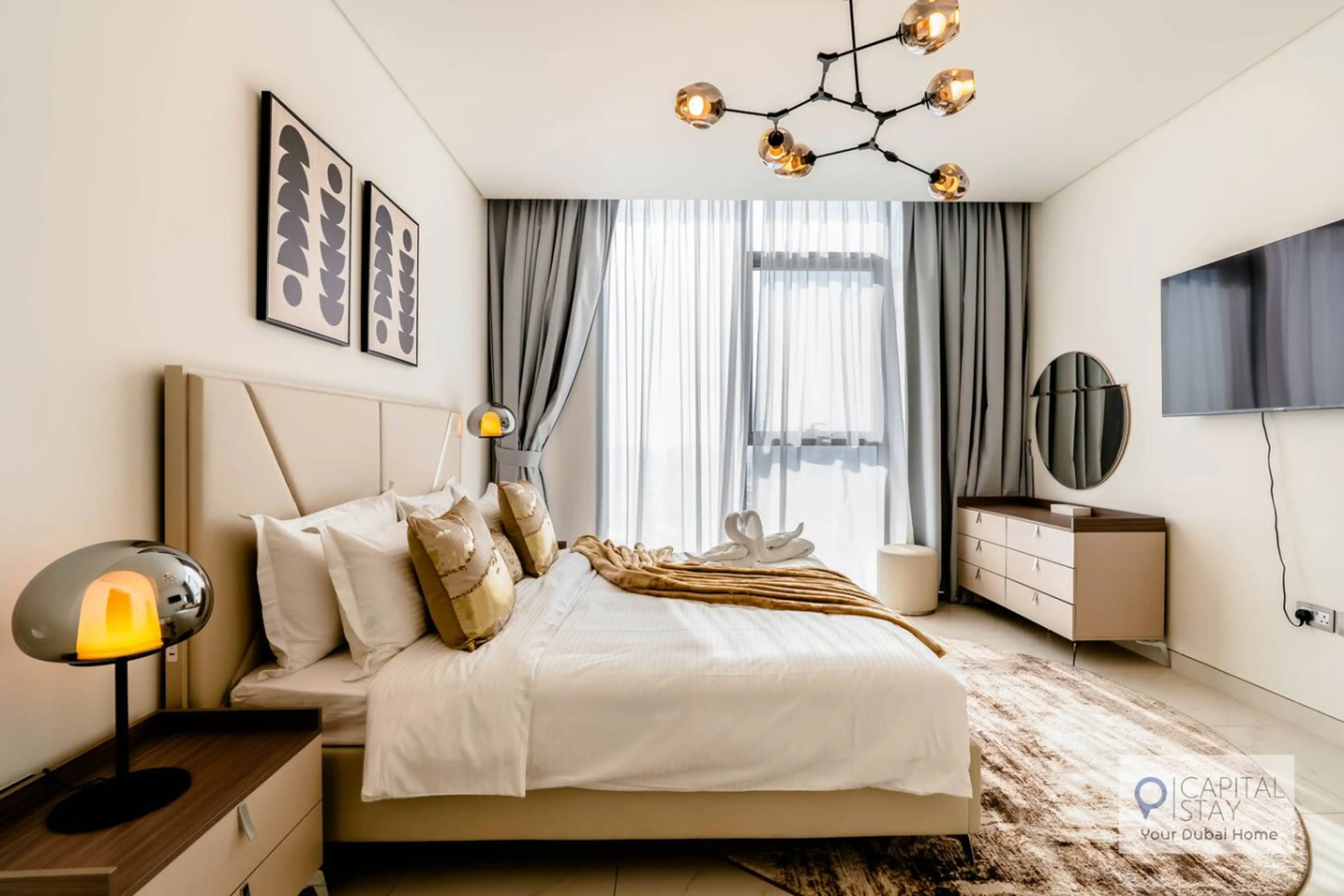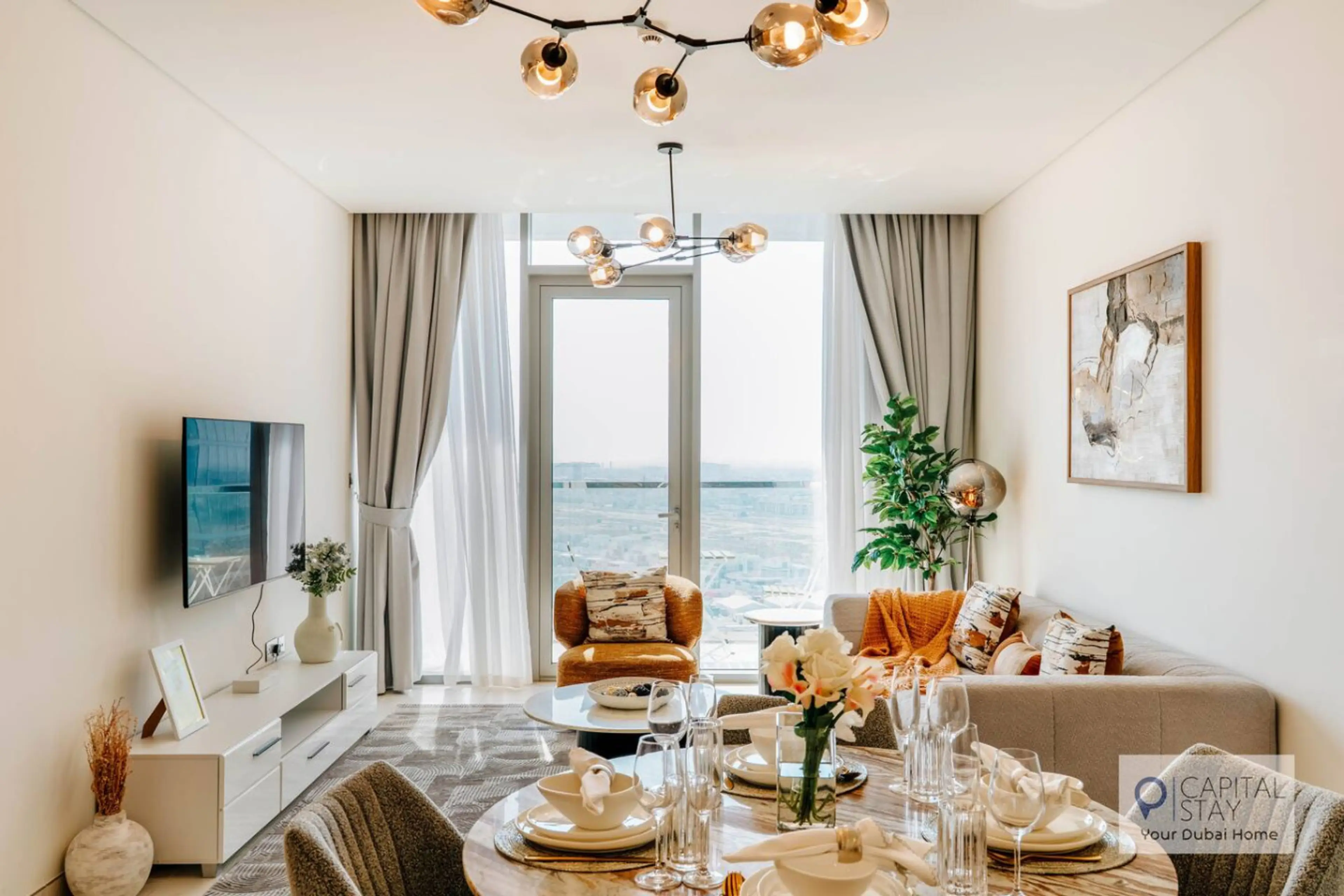 Stylish 1-bedroom apartment in MBR City offering modern comfort and elegance. Enjoy a bright living area, fully equipped kitchen, cozy bedroom, and balcony views. Guests have access to a pool, gym, and free parking. Just minutes from Downtown Dubai, Meydan, and Dubai Mall. Perfect for couples or bus...